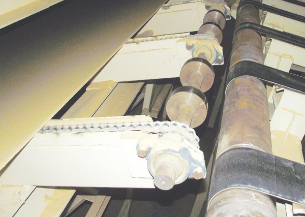 板料由链式输送机进入皮带机